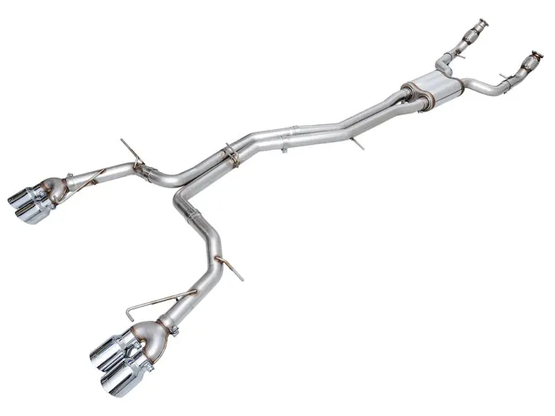 If raw and rowdy are your speed, the Track Edition is your dose of steel. A true dual 3” T304L stainless steel configuration featuring a bespoke, straight-through center resonator specific for the 2.9TT, and Track Edition straight sections in the rear. Quad 4.5″ double-walled, slash-cut tips in your choice of chrome silver or diamond black. AWE No CEL Guarantee, Perfect Fitment Guarantee, and Lifetime Warranty come standard. Please note: this version is known to get rowdy in the mid-range and during cruising speeds, and may be too much for many. For that reason, this particular version cannot be returned due to sound preference. Prepare yourself.