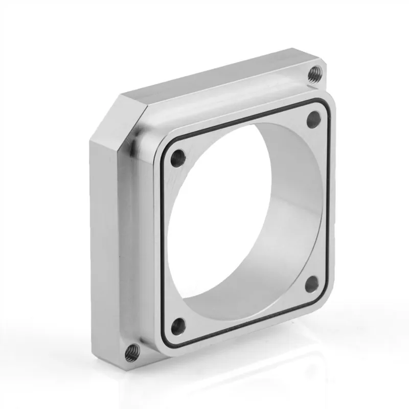 The spacer allows you to use our 75mm throttle body with the Cosworth intake manifold. This piece is bored out to 75mm to allow free flowing air directly into the manifold.