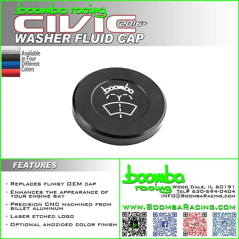 This washer fluid cap is CNC machined and crafted from premium billet aluminum. Available in red, blue, black, or natural finish, it is designed to easily replace the original washer fluid cap and improve the visual effect under your hood! A great touch of personalization to your ride!