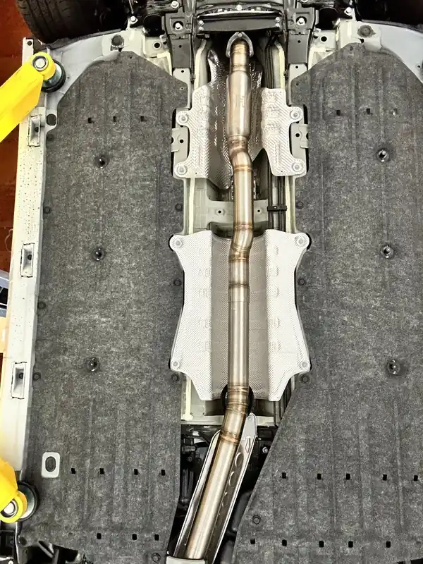 The PLM Integra/Civic mid-pipe exhaust replaces both factory restrictive resonators with a high-flow resonator positioned right after the front pipe connection, featuring mandrel-bent 3-inch tubing, a Y-pipe collector, and hand TIG welding. This design enhances exhaust flow, unlocking the full horsepower potential of your 1.5L turbo engine, making it one of the top upgrades for your 2023+ Integra or 2022+ Civic.