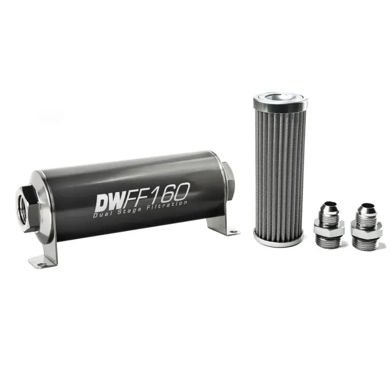 Flash Sale Deatschwerks In-Line Fuel Filter Element and Housing Kit Stainless Steel 100 Micron 160mm