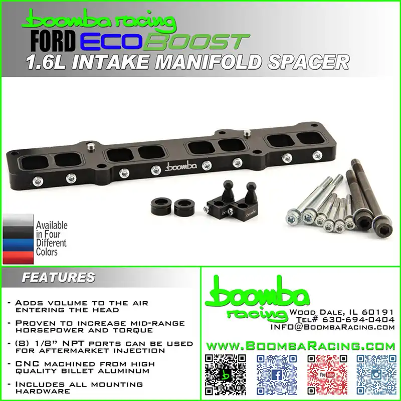 Made from premium billet aluminum, Boomba Racing is excited to announce our Intake Manifold Spacers for the Fiesta ST, Fusion, and Escape!