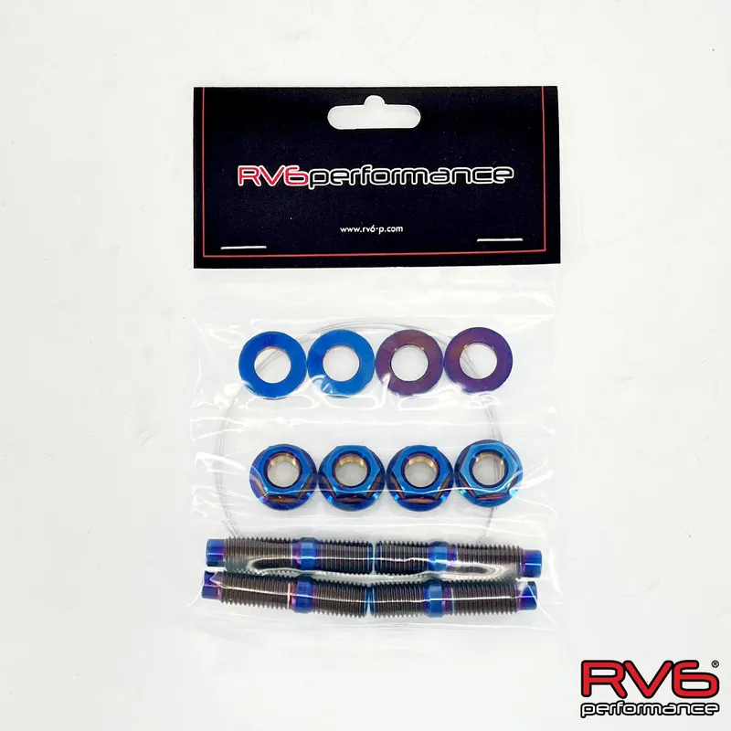 RV6 is proud to offer titanium stud kits for turbocharger to downpipe connection. Our stud kit comes with safety wire nuts to ensure a tight connection even under the most extreme conditions.