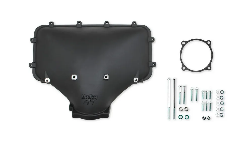 Holley now has cast aluminum plenum top options for those of us with limited room in the front of our engine bays. The cast aluminum side mount plenum tops resemble the older Ford EFI manifolds and will allow you to mount the throttle body on the side. This will allow for easier fabrication for boosted applications or for just a different look on your Hi-Ram manifold.