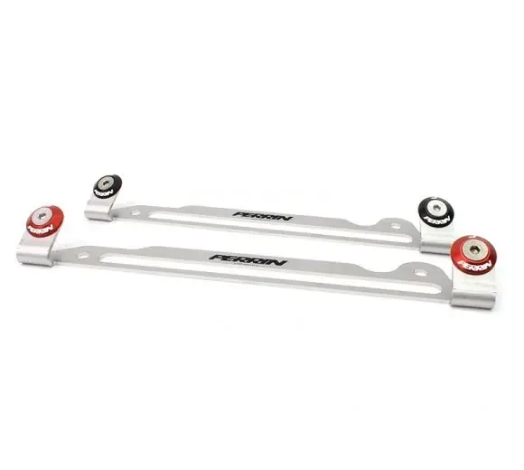 The bracket is made from stainless steel and the washers from billet aluminum. The washers are anodized red or black for a lasting finish and printed with the PERRIN logo.