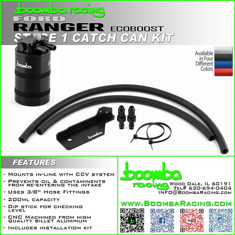 Introducing our Compact Catch Can Kit for the ’19+ Ranger Ecoboost! This kit is designed as a full package, meaning it includes everything necessary for installation.