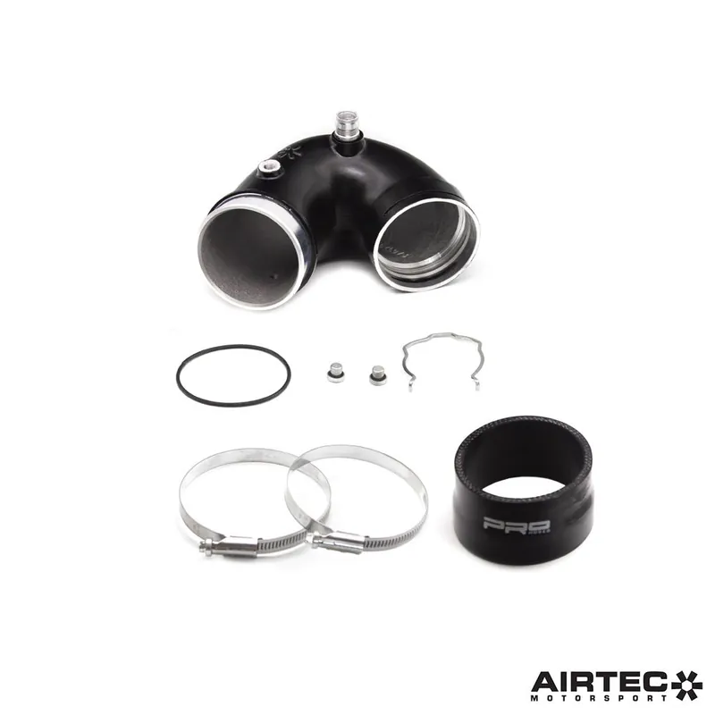 Finished in powder coated black with a cast AIRTEC Motorsport logo, there are also ports for meth injection and the comprehensive fitting kit includes a Pro Hoses silicone connector, O-ring, stainless-steel spring clip and jubilee clips, as well as detailed installation instructions.
